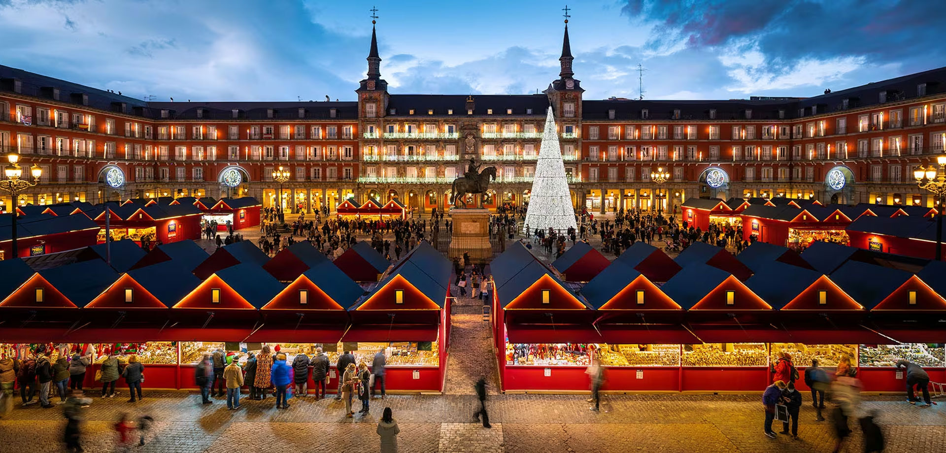 El mercadillo de la Plaza Mayor es uno de los más representativos y esperados de la ciudad. Su apertura habitual es el 27 de noviembre, extendiéndose hasta el 31 de diciembre, lo que lo convierte en uno de los primeros puntos navideños activos.